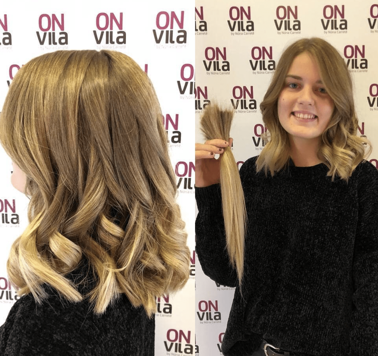 A On Vila Perruqueria by Núria Carreté, formem part de l'associació de donació de cabell "Mechones Solidarios"